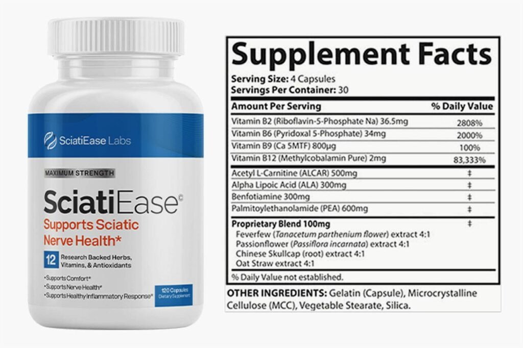 SciatiEase has B1, B6 and B12. B vitamins support nerve repair, reduce inflammation and overall nerve health. Strengthens nerves, improves mobility and reduces sciatic discomfort.